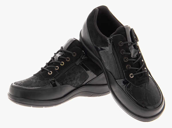 Полуботинок снабжен несколько большей чем обычно уплотненной задней частью, сформированной из термопласта. Она позволяет надежно фиксировать пяточную область в естественном положении, к тому же задник держит форму достаточно долгое время. Изнутри ботинки достаточно широки, а вставка из трикотажа отлично растягивается, что позволяет добавить в обувь орто-стельку, индивидуально изготовленную.