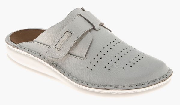 Анатомические тапочки с увеличенной полнотой-легкие и удобные. Комфортная стильная модель для дома и улицы. Сабо из натуральной кожи с амортизирующей полиуретановой подошвой. Съемная перфорированная анатомическая стелька с покрытием из микрофибры обладает гигроскопичностью и предотвращает скольжение стопы, её форма обеспечивает поддержку свода ,распределяет нагрузку на позвоночник, предотвращает появление усталости, боли в спине и ногах. Широкая липучка обеспечивает большое раскрытие, позволяя легко надеть обувь на любую ногу и отрегулировать модель по подъему и полноте.